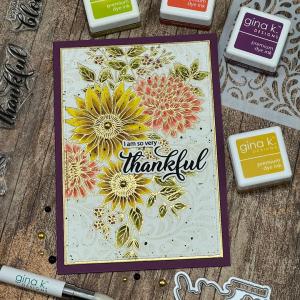 Welcome, and thank you for visiting my blog! Tonight, starting at 7:00PM CST, is the August release from Gina K Designs, filled with many fun products, including a brand new Kit! You can watch the release party live, on Gina’s YouTube channel and Facebook page. New products can also be found HERE. If you missed out on last month’s kit, those items are now available to purchase on their own. Also new, is a beautiful sunflower 3D embossing folder with dies and coloring stencils. These bundles have been very popular and can sell out fast, if you are at all interested I wouldn’t hesitate. For my card, I used the stamp set and coordinating dies (both sold separately) called, Change Is Beautiful, illustrated by Arjita Singh for Gina’s release. This is such a beautiful set fill with many greetings of expressions of gratitude. The floral arrangement in this set is perfect for any size cards, including A7 (5×7). All of the supplies I use on today’s card are linked below in the instructions and are highlighted in blue… if you shop using these links, I receive a small commission on sales at absolutely no cost to you. Should you choose to support me, thank you so much!! Let’s get started!
